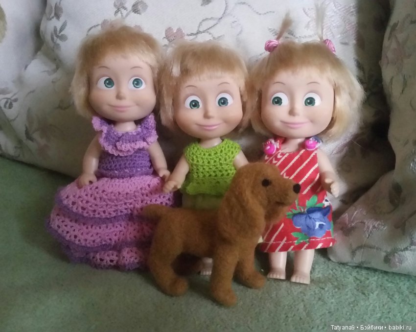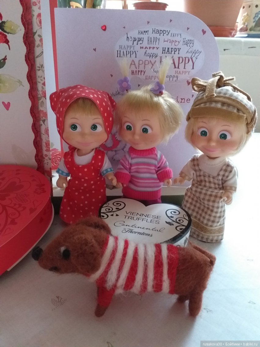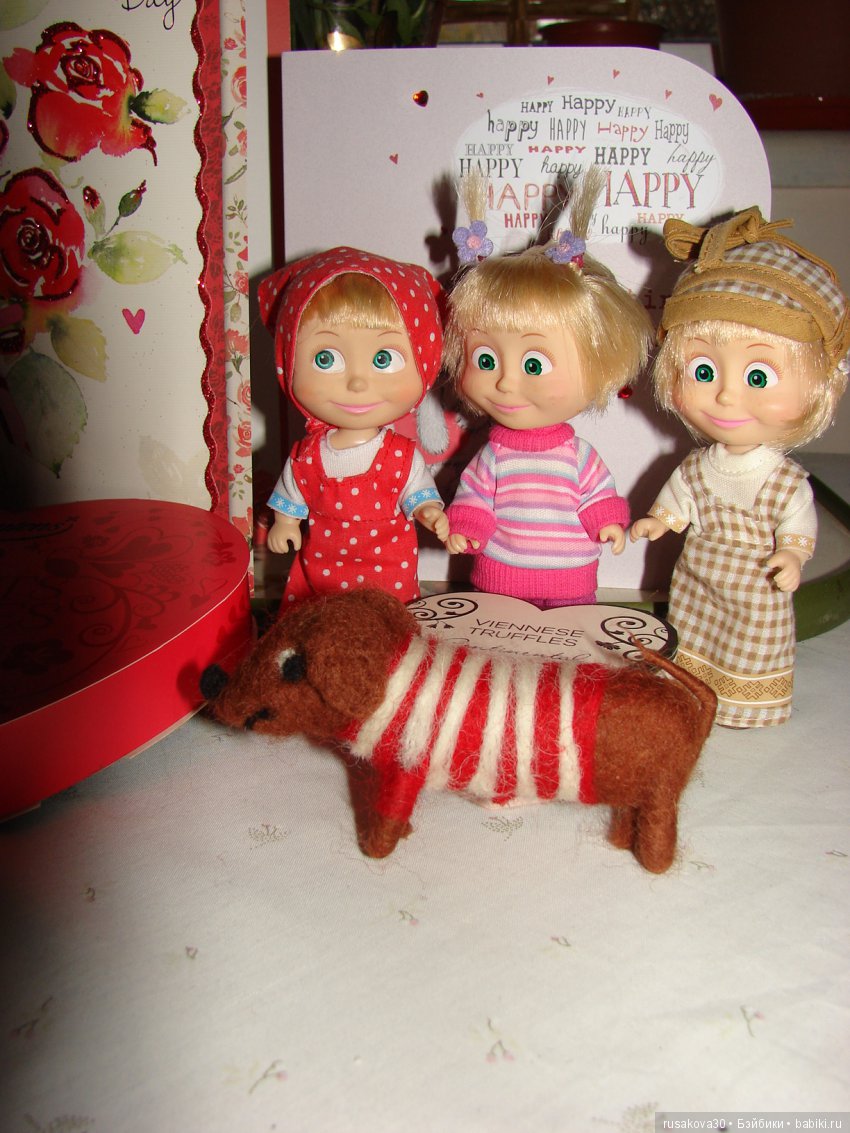 Как у мужа смекалка сработала, собачку в букете для Машек разглядеть! У нас тоже шерстяная собачка новенькая. Недавно сваляла. Теперь вижу-Машкам тоже подходит. И тоже охотничья.