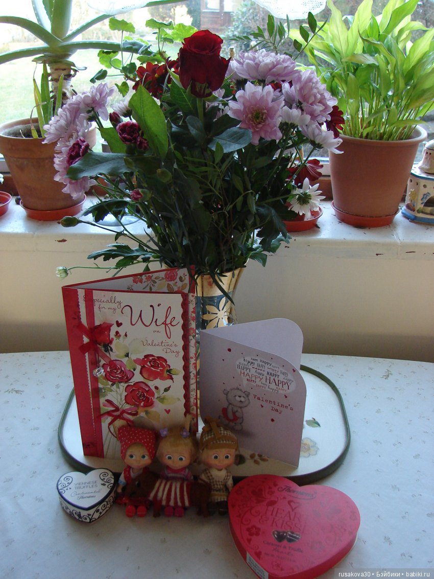 От нас с Ладой привет) мы тоже с цветочками, которые получили в День Валентина)