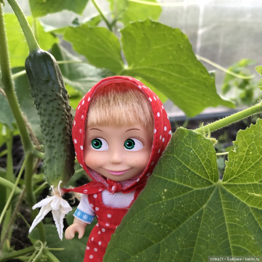Машка в красном решила полакомится огурчиками