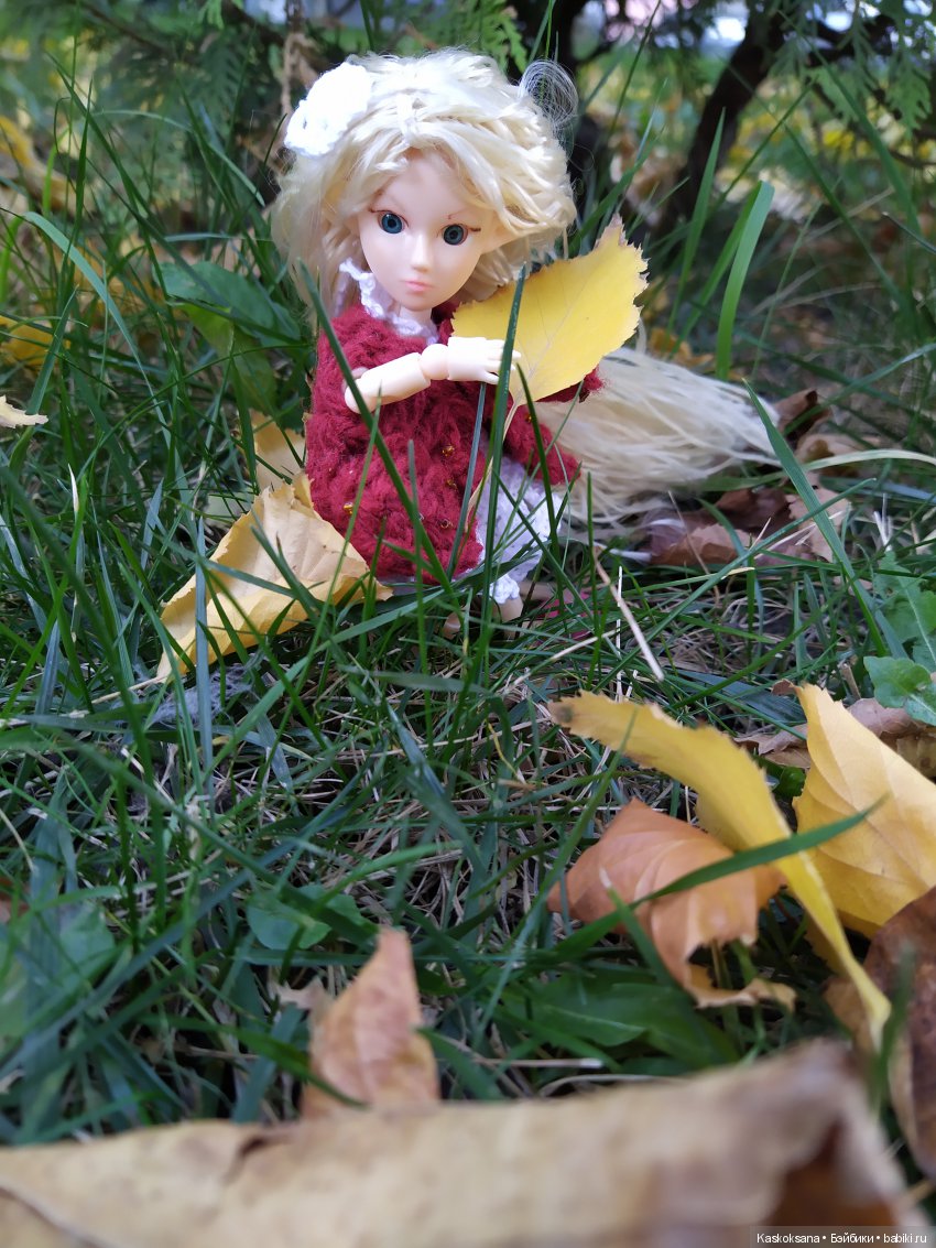 За окном декабрь. Низкое свинцовое небо. Снег. Все белое и серое. Так хочется вспомнить ушедшую осень. Машка выступает как модель и как ценитель красочной осени.