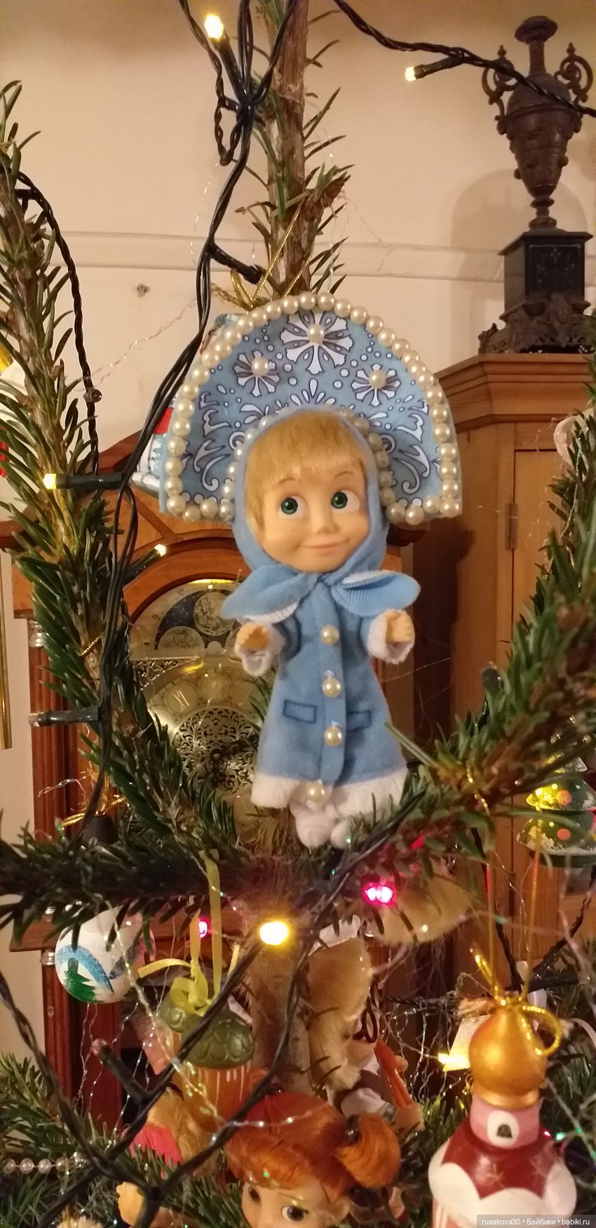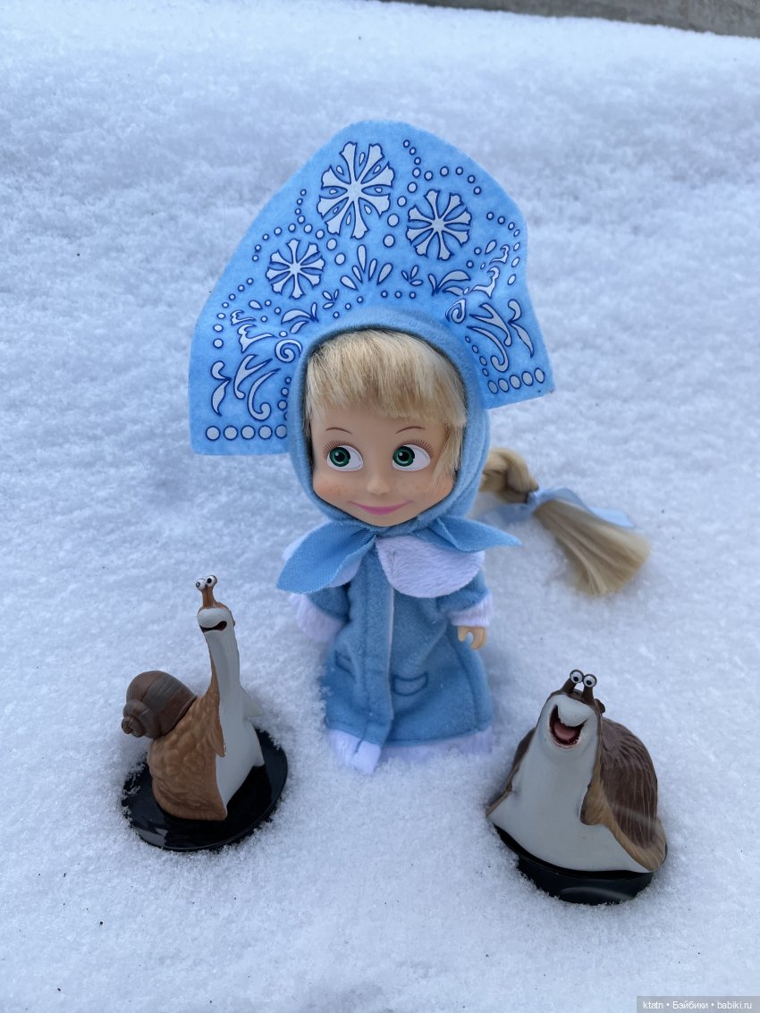 Мне Машу дарили побольше размером, Снегурочку, фото из интернета, у меня такая же, куда-то припрятали в очередную уборку. Маленькие очень нравятся (и мультик именно мне нравится, даже больше, чем детям моим, ну милая она, особенно по сравнению со многими другими девочками из м/ф)