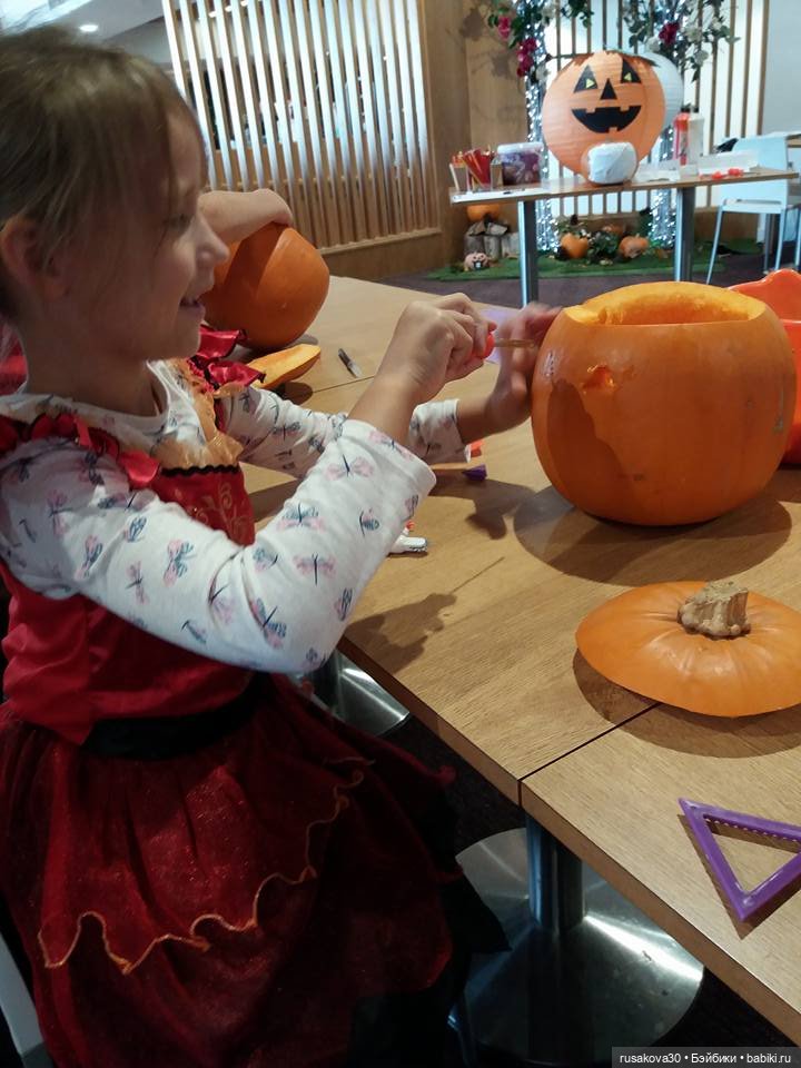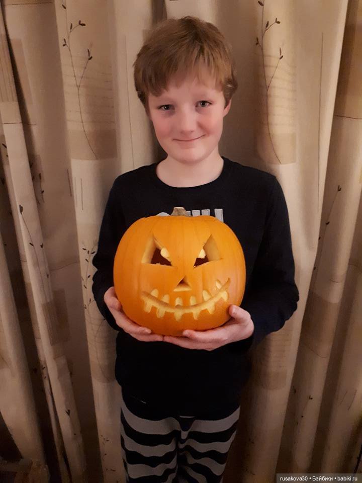 Вчера, например, они все вырезали в школе тыквы, а потом он домой её принес.🎃