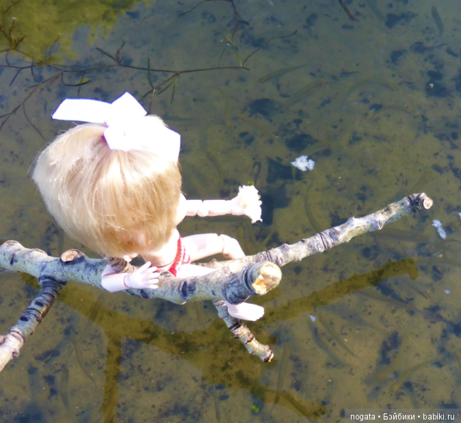 — Где тут мои рыбки? Приманим! Хлебом приманим, есть у тебя булка? Приплыли миленькие!