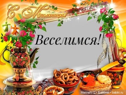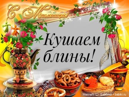 — Сегодня высятся горы блинов и различных угощений. Не время думать о диете, вода в самоваре давно кипит, ждет гостей!