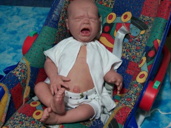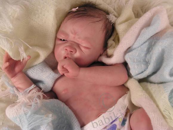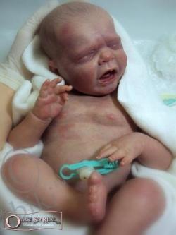 Есть реборны, изображающие значительно недоношенных деток, они маленькие, могут быть 28-30 см, но это не мини-реборны. Видела и таких, с трубочками в носу… Детки — маленькие борцы за жизнь. Они также безупречно выполнены, но показывать не буду. Потому что это само по себе страшно.