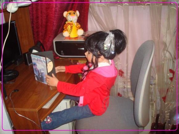А взрослая девочка очень понравилась в шубке, светлый мех к серым глазам, чудо! Продвинутая барышня: И копьютером владеет, и с детьми нянчится! Еще раз мои поздравления!