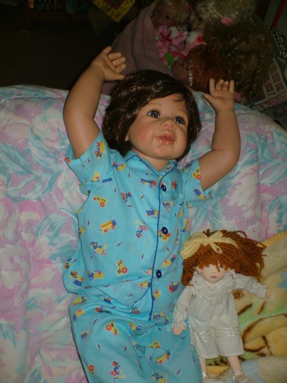 Мне очень-очень приятно, что мою новую дочурку так высоко оценили (мужчины — не мы, они не кидаются с распростертыми объятиями к каждой кукле-малышке, поэтому мнение вашего мужа дорого стоит).