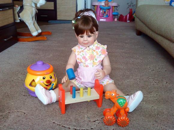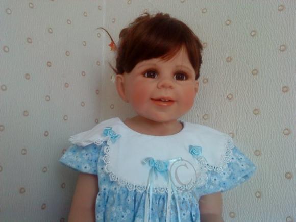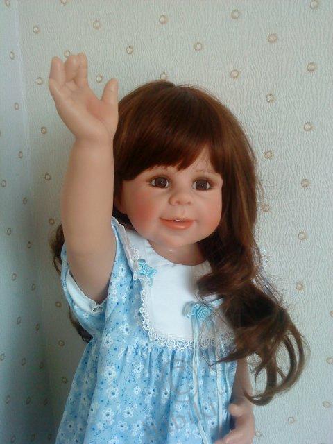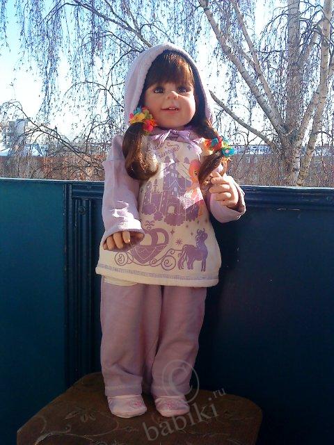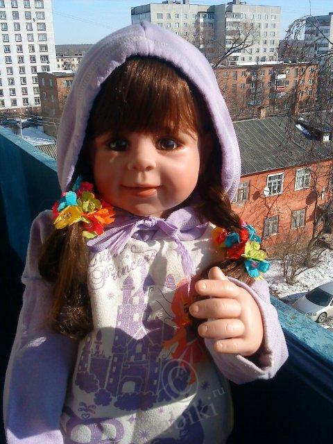 Наконец-то вчера получила мою долгожданную посылочку из Германии от VikkiBan, за что ей огромное спасибо. Замечательная девочка Каро (мы зовем ее Кариной) от Моники Левенинг теперь живет в моем доме. Девочка выполнена полностью из винила, рост где-то 70 — 75 см.