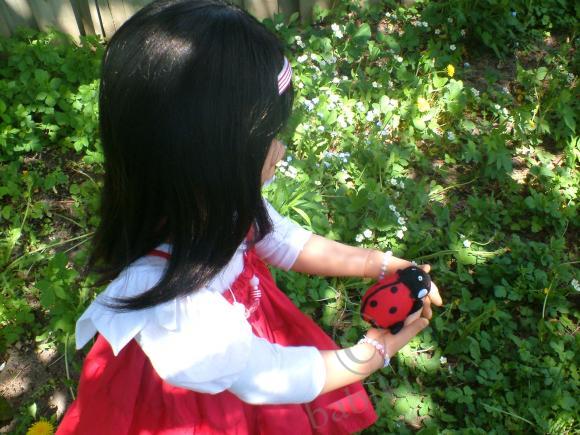 … и не заметила, как к ней снова прилетела божья коровка, и села рядом