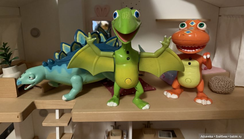 У нас 4 динозавра, еще трицерапторс есть, но на дальних хранилищах. Они так весело переговариваются друг с другом, и хором поют 🦖🦖🦖🦖 привет родным 👋🏼.