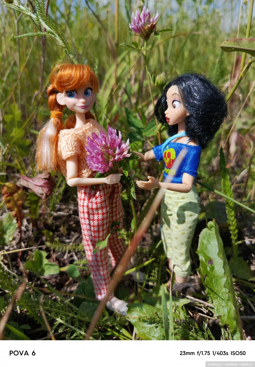 Закадычные подруги Мерида и Аврора на прогулке вместе с Барби и Такарочкой.