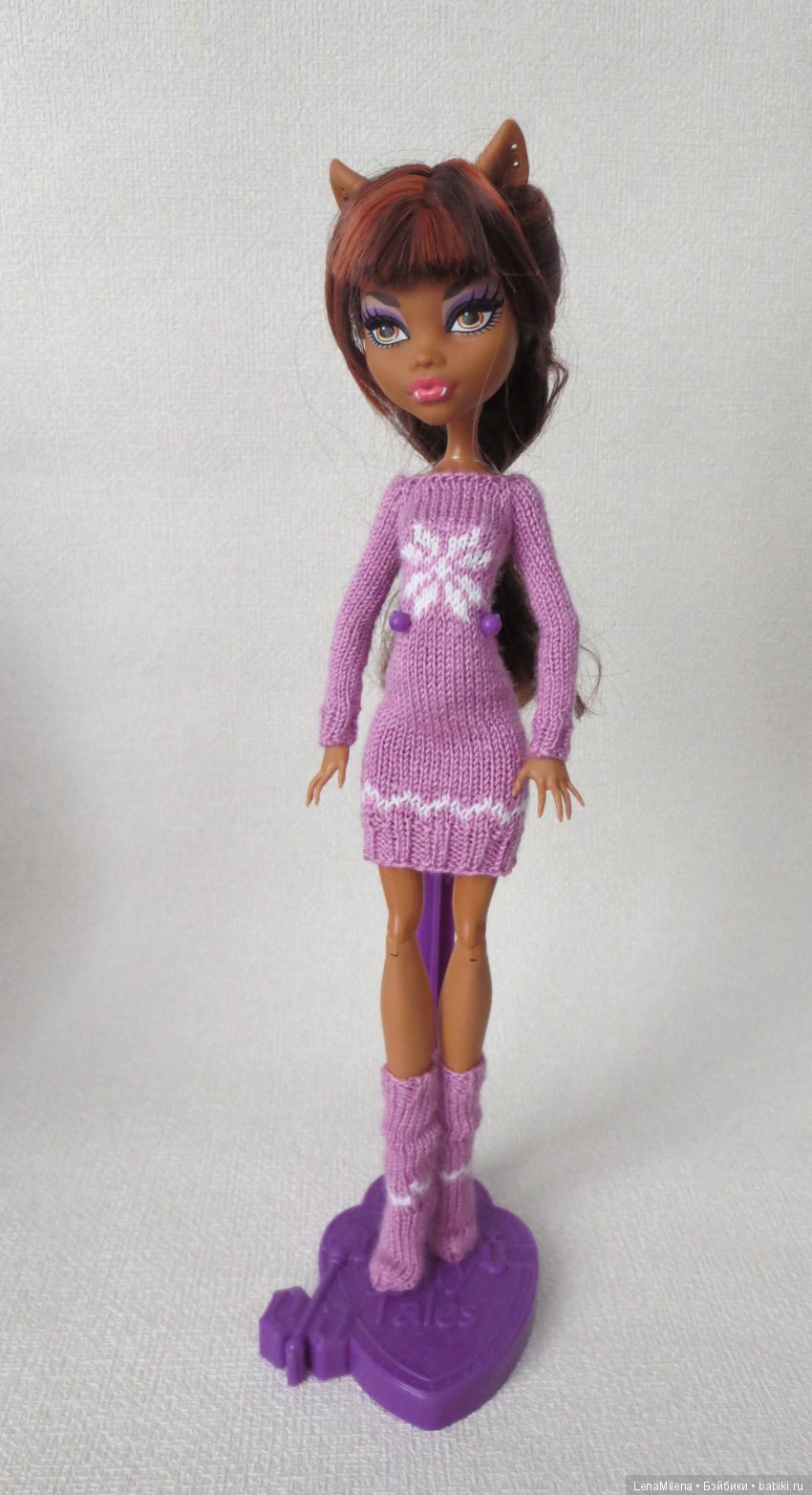 Здравствуйте дорогие жители бэйбиков. Никогда не интересовалась куклами Monster High. Но, однажды, зашла в один магазин, просто посмотреть, а там… А там шибадзуки! Которых я планировала покупать в количестве двух, но не здесь и не сейчас. Подходит продавец, симпатичный молодой человек и, мило улыбаясь, рассказывает, что сейчас у них в магазине скидка, а именно, покупаешь три ЛЮБЫХ игрушки и четвертая в подарок. Догадались? Три шибадзуки! Кто же четвертый? Мой терпеливый муж, относящийся к моему хобби с одобрением и немного с юмором, вдруг говорит «возьми вот эту» и показывает на соседнюю полку с монстряшками. Так ко мне попала розовая Дракула. При ближайшем рассмотрении, она оказалась очень приятной на ощупь и симпатичной внешне. Шить на нее довольно-таки трудно, вязать легче. Хочу показать вам, как девочке у меня живется.