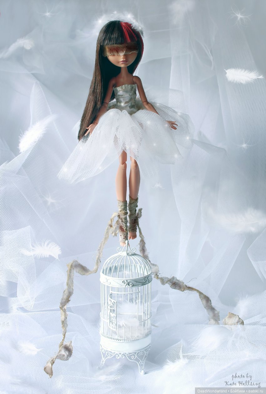 Так она у меня была подвешена к настольной лампе за шею шнурочком)) Входит мама и видит картину — весь стол в перьях, занавешен белой тряпкой, а кукла обмотана кровавыми бинтами (на самом деле краска, конечно) и в буквальном смысле повесилась на лампе)))) Долго пришлось объяснять, что у меня все в порядке с головой))))