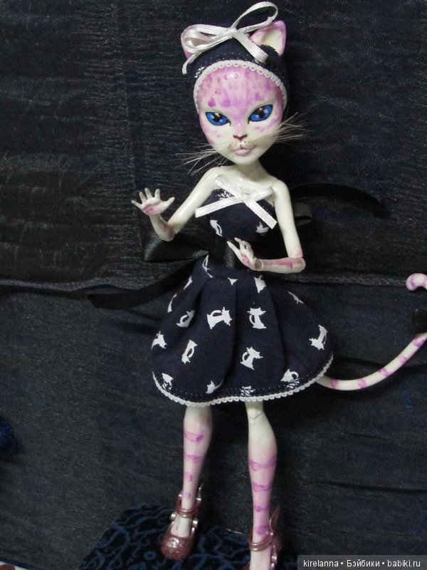 Одним из самых первых моих кастомов, за который мне до сих пор стыдно в виду его кривизны, была Пандора, на основе Кэтти Нуар. Ну не нравились мне ее розовые тени и глаза))) сейчас наверное не стала бы ее трогать в виду редкости, но тогда что-то пошло не так