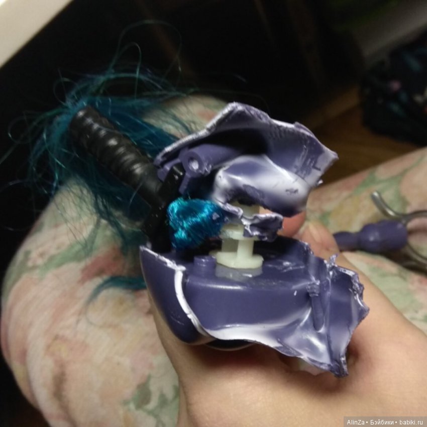 Не столь давно я выкупила под ООАК на Авито Монстряшку Авеа Торттер. Состояние у нее довольно хорошее, мэйк стерла, черепа с корпуса стерла, но теперь смотрю на волосы и думаю — они под цвет крыльев, и это хорошо. И сами волосы без клея, не скубленные, то есть, промыть с кондиционером, расчесать и отлично будет.