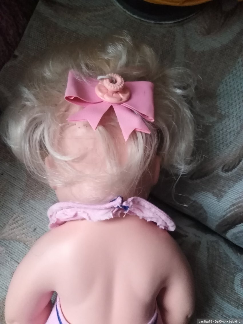 Пока не могу понять как ей уложить волосы: продавец сказала, что мыть надо аккуратно, чтобы вода внутрь не попала, значит и сушить придется вниз головой. Что на голове ей соорудить: хвостики или отделаться головным убором — пол дня играю с ней, а вопросов меньше не стало.