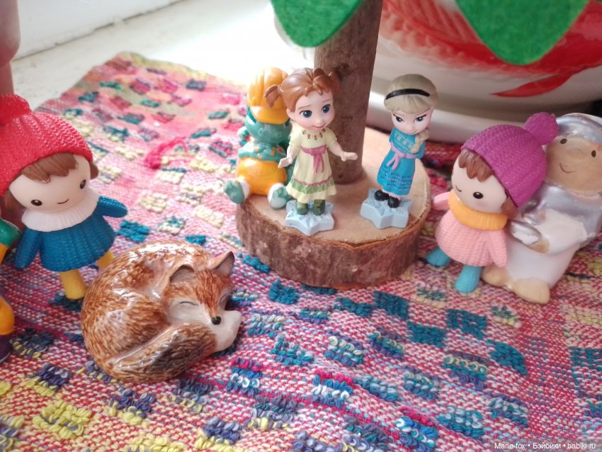 Мои пока основной частью в коробках но те, кто выползают — сразу пытаются «строить домики» на верхних крышках трёх самодельных коробов. Длина одного такого «домика» — почти метр и ширина 50 см. С мебелью правда беда и стенок как таковых нет. Скорее просто как очень мобильная площадка, где можно расставить, положить, рассадить, пофоткать. Типа такого: