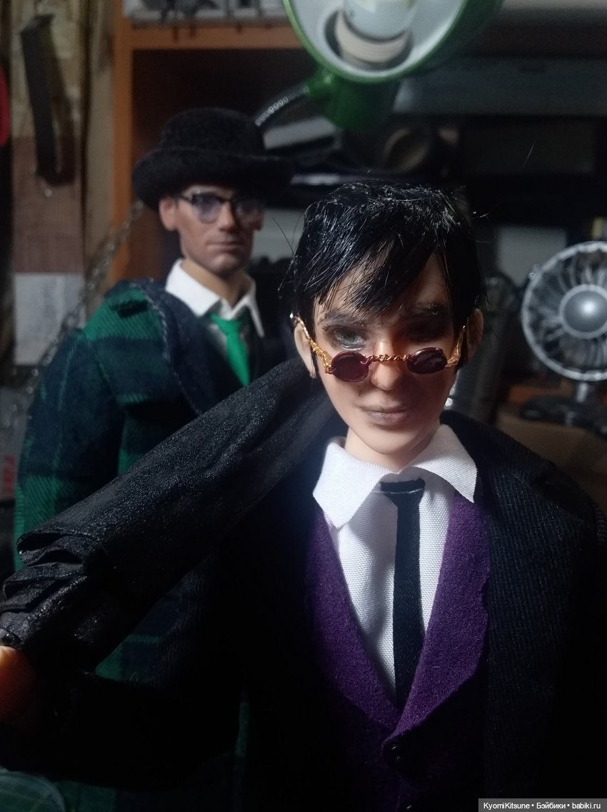 Еще мне нужно доделать ему каноничные туфли-Оксфорды ( у меня закончился акрииииил!) и трость, поскольку персонаж хромает… Ну и с тростью он смотрится просто круто) С тростью и с зонтиком)