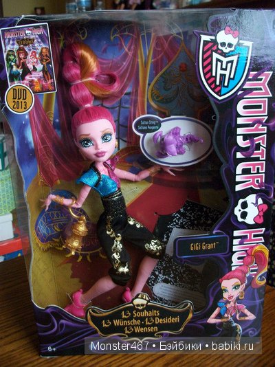 Здравствуйте! Сегодня я хочу вам показать очень популярную и новую серию кукол Monster High 13 желаний!!! Есть такой мультик из монстер хай как Хоулин Вульф хотела протереть волшебную лампу, терла, терла и от туда вылезла дочь джина! И она им разрешила выполнить из 13 заветных желаний. Я конечно не смотрела мультик, но рекламу видела. Кстати теперь в школе монстров появилась новая ученица! Твайла она забирает плохие сны и дает детям сладкие и хорошие сны! Ну ладно, хватит болтовни! Я вам покажу эту серию кукол.