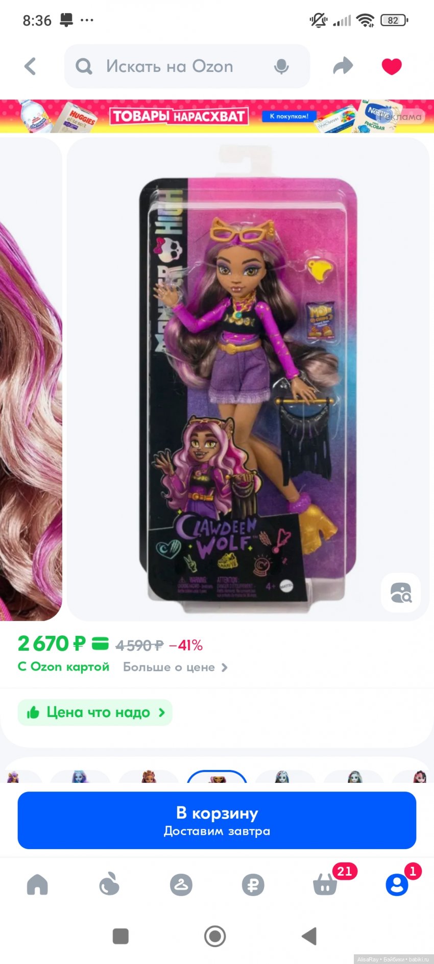 Приветствую. Мне просто хотелось поделится с вами прекрасной Клодин Вульф из серии Monster Fest. Самая по себе эта серия очень яркая и интересная. Когда только вышли первые промо фото Кло зацепила меня особенно. Очень уж мне понравилась ее цветовая гамма и образ. Особенно ее украшение на голове в виде кристаллов с цветами и полумесяцем. Очень рада что поселила у себя эту красавицу. Прекрасная волчица.