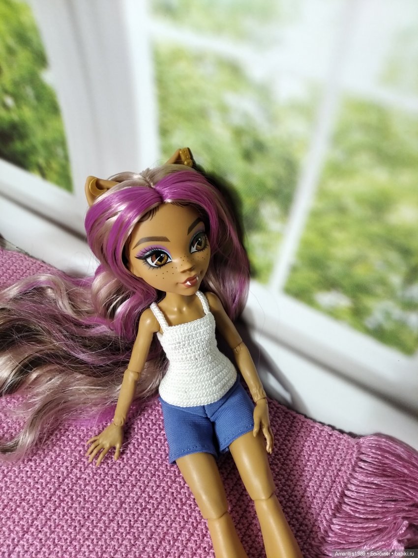 По поводу волос. Была публикация-обзор на эту же пляжную Клодин, там говорилось, что материал волос у кукол этой линейки (пляжной) — саран, то есть волосы хорошие. А вообще у части выпусков нового поколения МХ (g3) волосы из полипропилена, он по качеству не очень, а у части волосы из сарана.