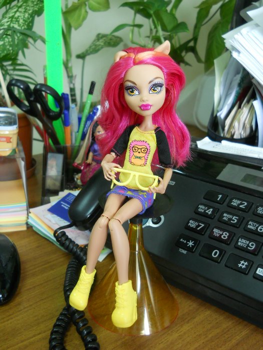 Моя обожаемая Лиз Monster high повсюду со мной! Не могу, глядя на её грустные глазки подолгу отставлять её в витрине, достаточно и долгих ночей, когда приходится прятать её от хитрющего кота) Поэтому мы с ней практически не расстаемся, и приходится ей коротать денечки сидя на рабочем столе, наблюдая за моей работой и болтая о том о сем…