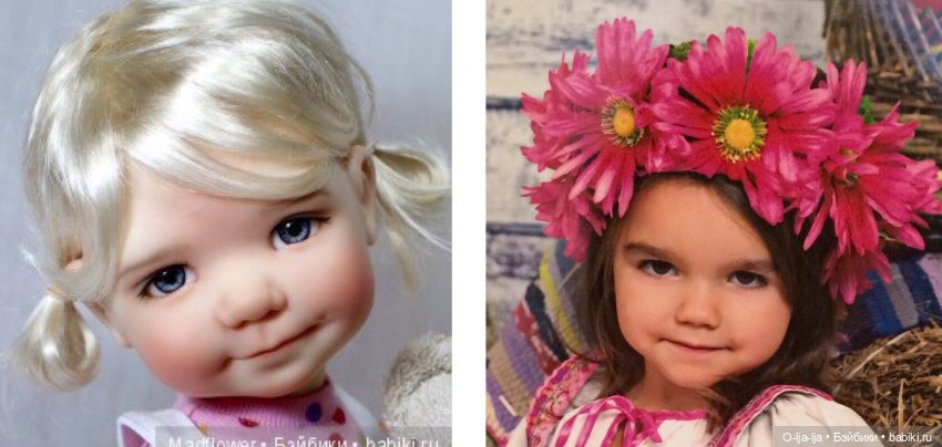 Спасибо огромное Мирославе, что она выбрала ее! И сделала такое чудо! У нас уже складывается образ (волосы похожие на дочкины.) А пока покажу самые первые портретики куколки дома.