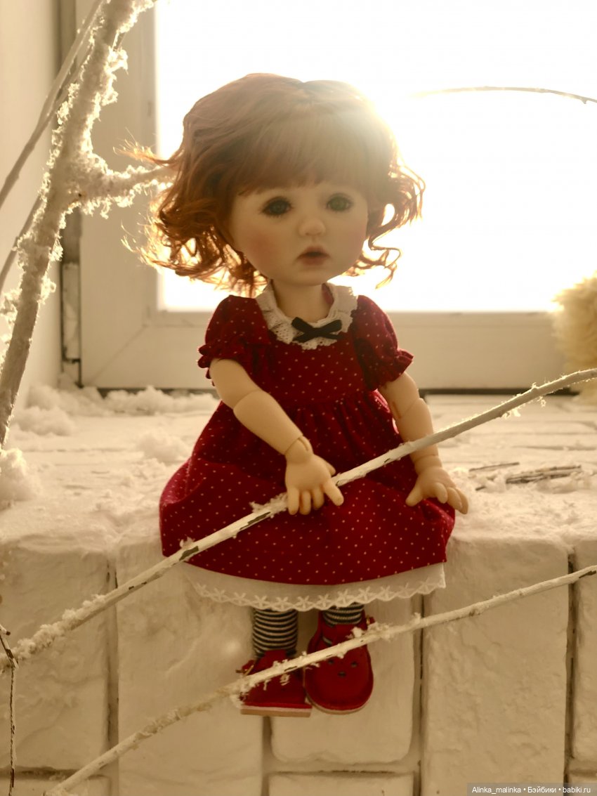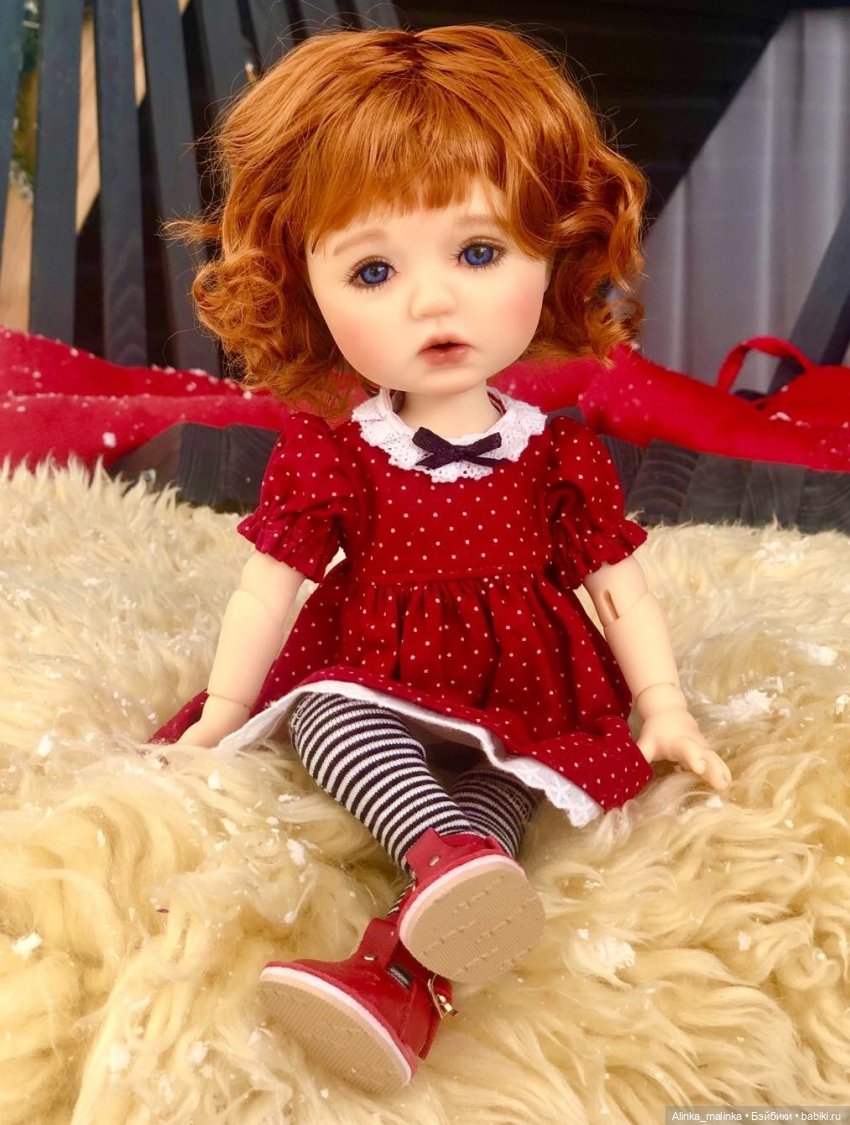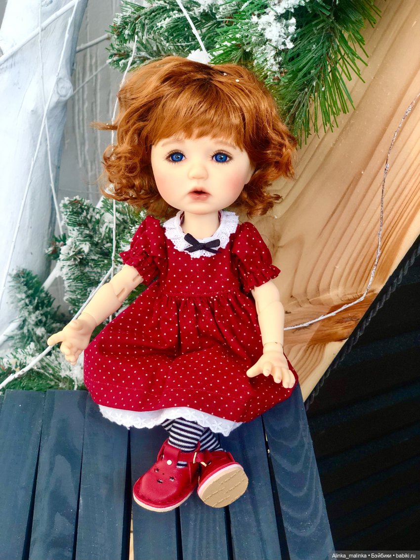 Особеннно в рыжем паричке и в платье понравилась с полосатыми колготочками, прям девочка-девочка!