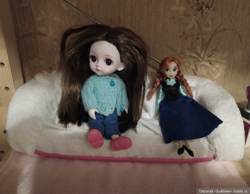Добрый вечер, Бэйбики! Уже давно мои куклы просят, что бы я им связала диванчик! И вот наконец-то свершилось! Выходные не прошли в пустую! Диванчик связан! Куклы довольны!