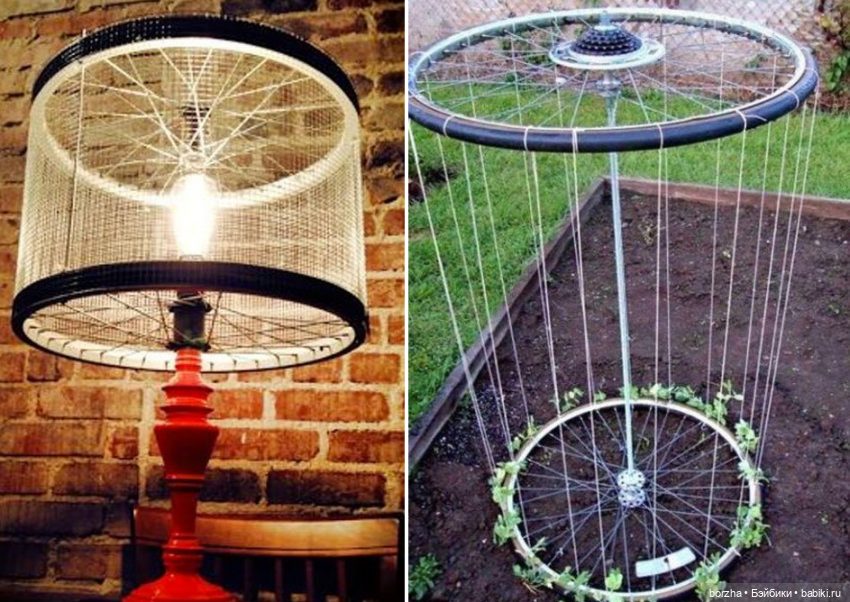 Можно ещё сделать что-то типа садовой инсталляции: цветы, камушки, колесо :))