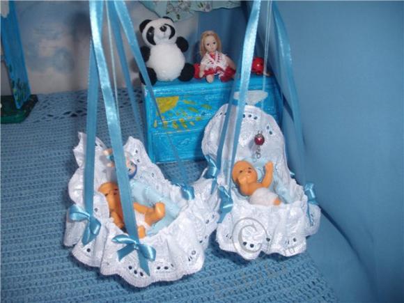 Колыбельки сделаны из ёмкости от чудо-творожка. Верх срезала, обшила шитьём.