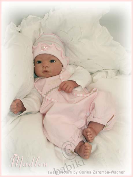 Просмотрела Ваши замечательные мечты и вспомнила себя пару месяцев назад! когда первый малыш попал ко мне домой… Но малыши Милдошки не селятся по одному и нас сейчас 9 крошек! Две малышки по пути домой и о двух малышах мы ведем переговоры о доставки в Россию домой! У малышей этих в основном мягконабивное тельце.Ручки и ножки если полный винил — 22 дюйма, если винил по локотки и по коленочки -18-20 дюймов, если винил у конечностей полный и ножки прямые -24 дюйма.Но я Вас уверяю, все малышки очень трогательны и очаровательны! На мой взгляд малыши из серии 18-20 дюймов даже трогательнее и реалистичнее.Они мне напоминают грудничков: тяжеленькие и мягонькие так и хочется их тискать. Я вяжу одежду для маленьких деток и в моей коллекции есть куколки по всем размерам и я не могу определить кого я люблю больше всего и кто интереснее всего. Этот выбор сделать нереально! Берите любую не сомневайтесь. Мой друг с eBay продает малышку по очень приемлемой цене и доставку он определяет самую доступную. Это малыш с Вашего фото в желто-клечатом костюмчике со слоником. Только у куколки в продаже другой наряд. Я некоторые куклы покупала у него. Честно говоря я хотела прикупить у него и ее но у нас уже есть ее сестренка Варенька. Решайтесь не пожалеете! обращайтесь ко мне по любым вопросам, не стесняйтесь! А мы не удержались и небольшой компанией решили к Вам в гости зайти!