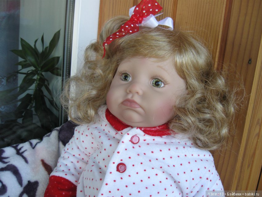Хочу показать вам ещё одну малышку Lee Middleton, которая у меня живёт. Это Kissing Frogs от Donna RuBert. Очень забавная обижулька, с милыми кудряшками. Куколка ростом 23 дюйма, примерно 60 см, довольно крупная, винил 3/4, лимит 300 шт. На ноготках маникюрчик. Девочка стройняшка, не такой пухлячок как куклы о Ревы Шик, но всё равно очень тискательная)) В общем, смотрите на мою королевишну))