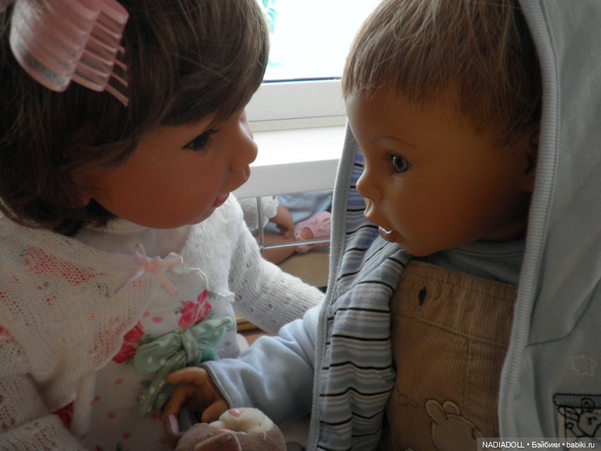 А совсем недавно к нам приехала ее сестричка -двойняшка Балеринка.Девочки имеют один молд, но совершенно разные.Но, так как малышки похожи, как героини фильма,, Королевство кривых зеркал,, девочек назвали Яна и Аня, дома просто Нюточка.
