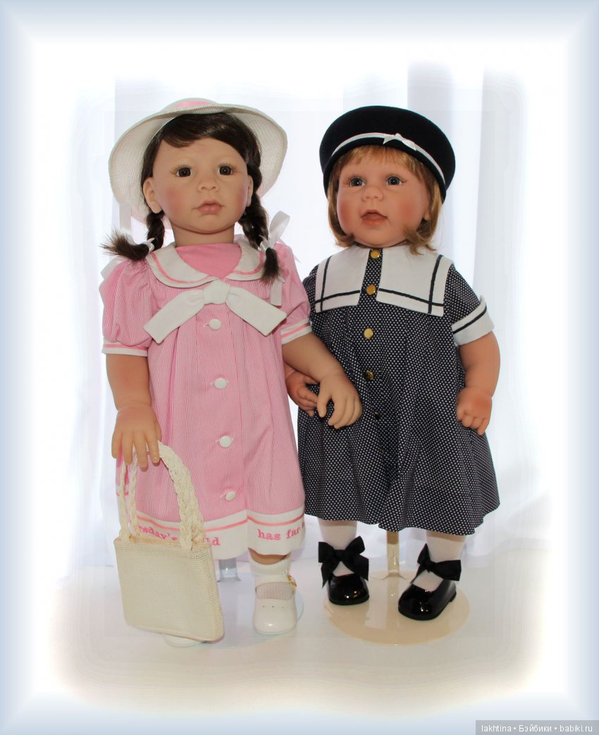 В нашей кукло-семье есть и другие девочки-улыбашки автора Рева Шик. И хотя я о них уже неоднократно рассказывала, делиться их невероятным позитивом хочется ещё и ещё! К тому же, всегда интересно увидеть, как куклы похожих, но разных молдов смотрятся вместе. На фотографиях ниже наши подружки с малышкой «Hop Scotch» в родном аутфите и в нарядике от замечательного мастера сайта Ольги Колмаковой:)