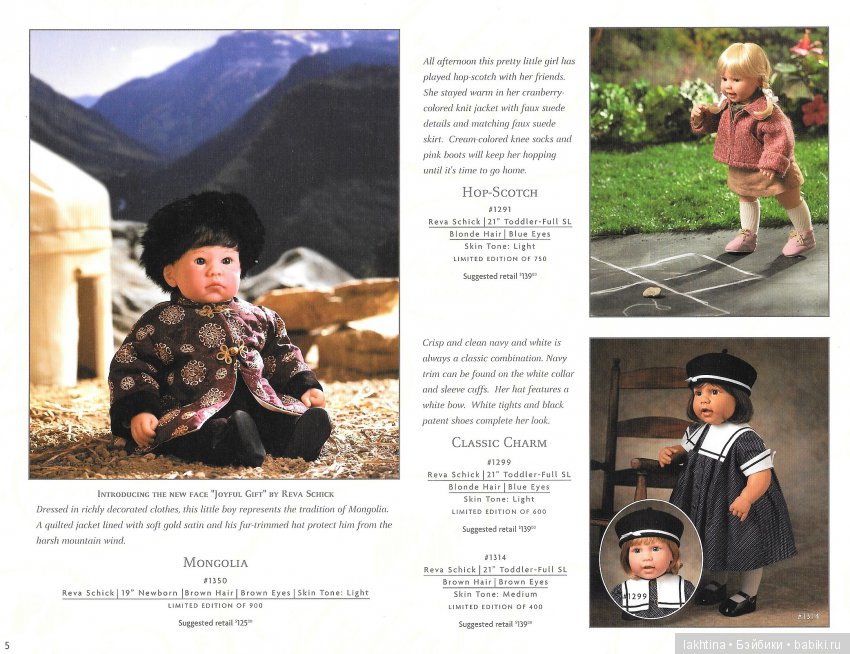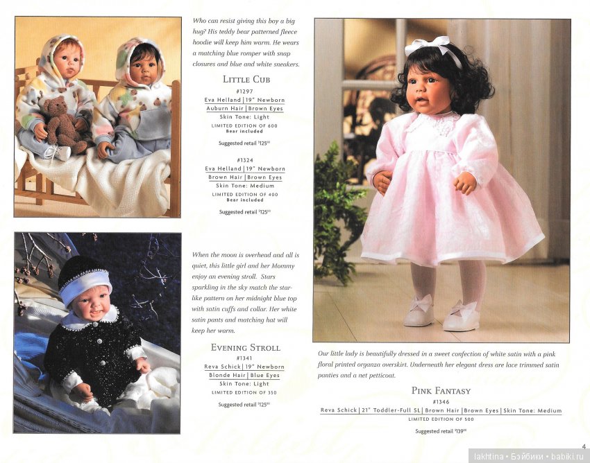 А сейчас я хочу немного отвлечься от нашего повествования и рассказать о небольшом недоразумении, которое приключилось со мной. Три года увлечённо собирая кукол Lee Middleton, я почему-то думала, что замечательная куколка «My big sister» также выполнена на основе молда «Honey Lamb». Как же я была самонадеянна и невнимательна! Молд похож, да не тот! Это я обнаружила только лишь при подготовке данной публикации! Но всё же мне очень хочется показать вам фото страничек из каталога 2004 года, на которых запечатлена эта удивительная девочка вместе со своим младшим братом. Посмотрите, какие трогательные малыши! Как доверчиво и внимательно маленький братик смотрит на свою «большую» сестру:)