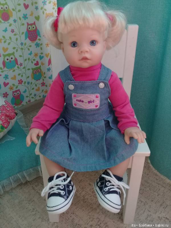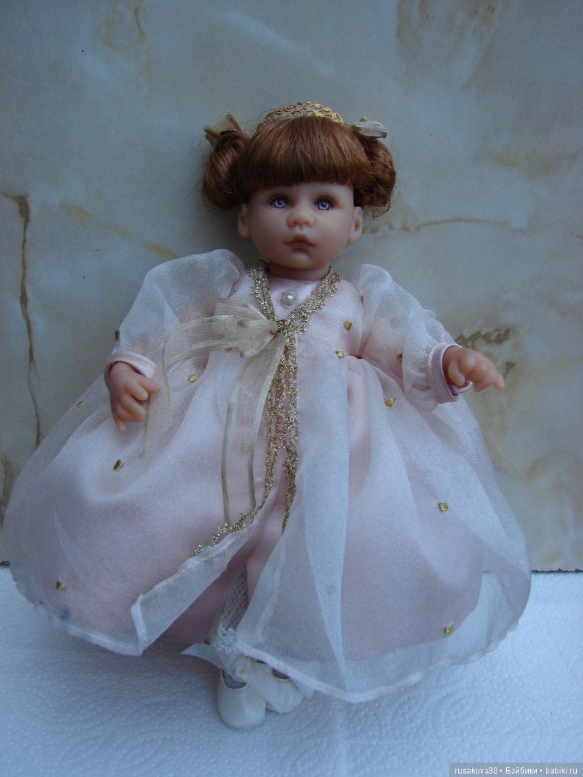 Зашли в магазин, попросили принести куколку. Она маленькая около 23-25 см.