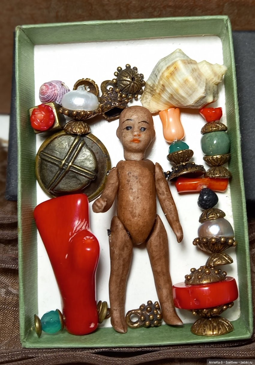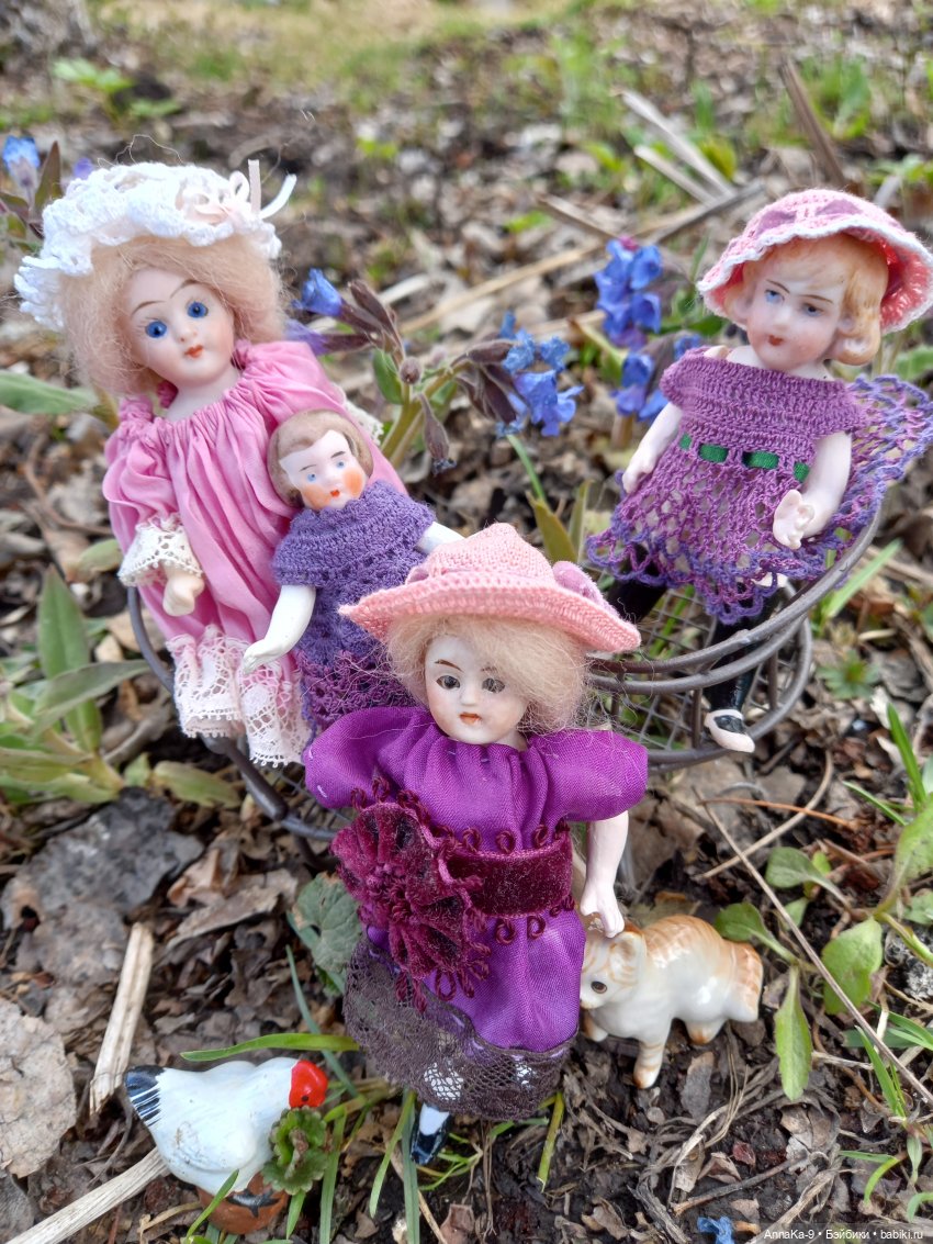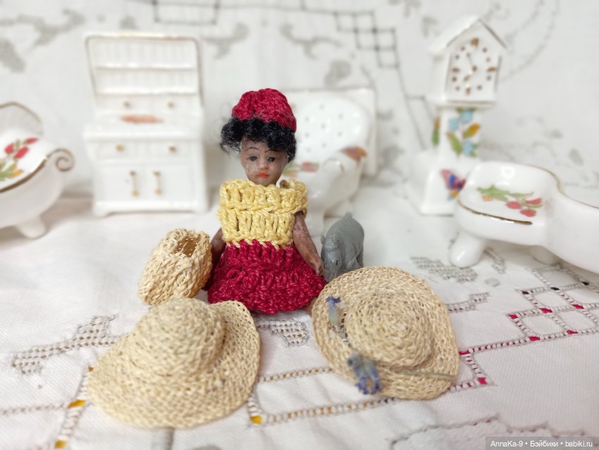 Есть у меня любимая крошечная миньонета француженка Корица. Ростиком всего 6,5 см, самая маленькая моя куколка, но с таким большим приданым, у неё свой фарфоровый мебельный гарнитур, компаньон носорог, баночки скляночки из коралла, жемчуга и меди и богатый гардероб. Любуемся!Так же можно посмотреть по ссылки подборку вязаных нарядов для миньонет babiki.ru/blog/mignonette/355929.html