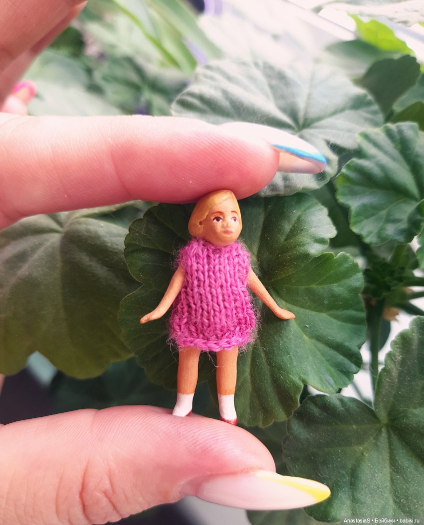 На мелких очень приятно вязать, то же нет кукол меньше 5 см, но есть хертвиг 7,5 см, на неё отлично вязать крючком.