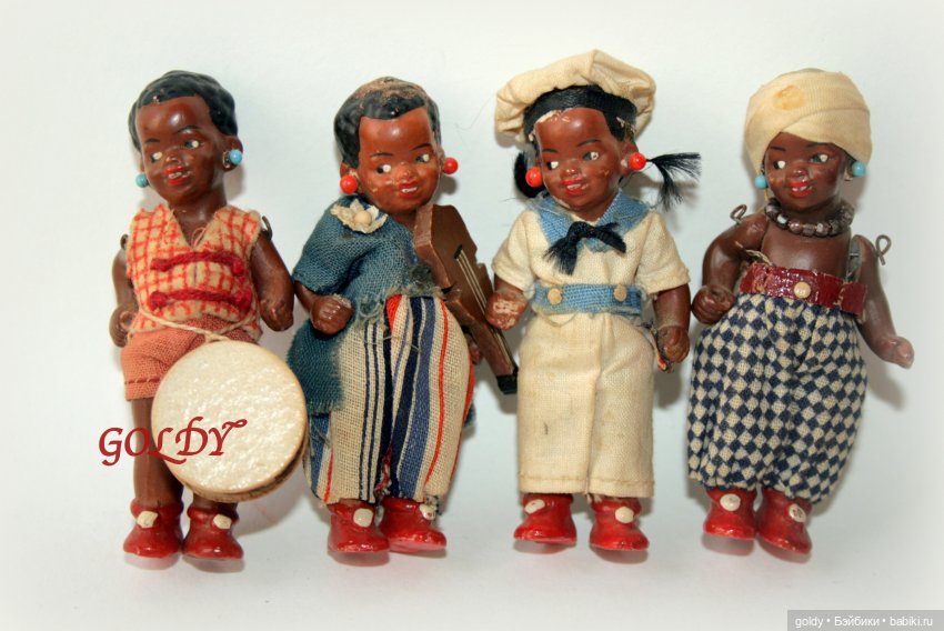 И вот сегодня новая подборка с миниатюрными антикварными фарфоровыми миньонетами цвета капучино, корицы, шоколада, какао. Лица большинства ориетальных миньонет ничем не отличаются от своих европейских сестричек, у моделей Кунлеца есть изменения в молдах, нос становиться шире и губы пухлее, так же две чёрные куколки с золотыми браслетами на ногах и мальчик в шафрановых шароварах, у них так же африканские черты, но в основном все куколки и имеют миловидную внешность. Малышки в фантазийных нарядах народов африки, юбках с украшением из бисера, их любопытно рассматривать.