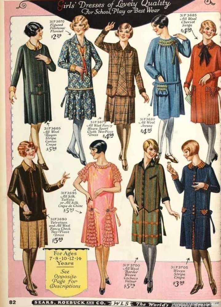В 20-х женщины показывали лодыжку, в 30-х юбка чуть ниже колен.