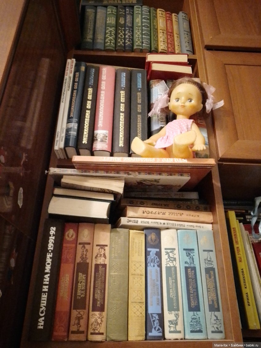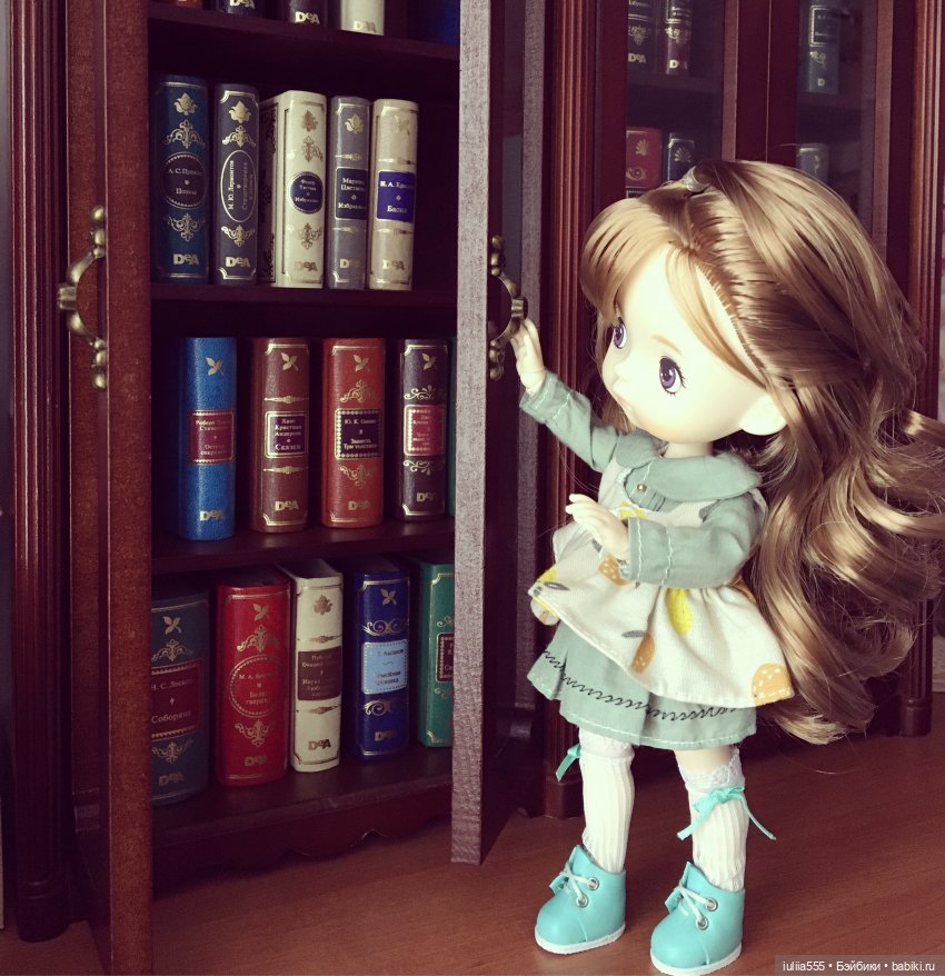Интересно, помнит кто-нибудь эти шкафы и миниатюрные книги? Мы с мамой собирали их с огромным удовольствием, но вот на фото почему-то этот шкаф у меня не мелькал. Решила поснимать с ним куклу. Выбрала Софочку — соскучилась по ней сильно :)