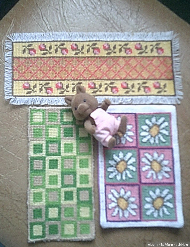 Вышитые миниатюрные коврики для коллекционных домиков
