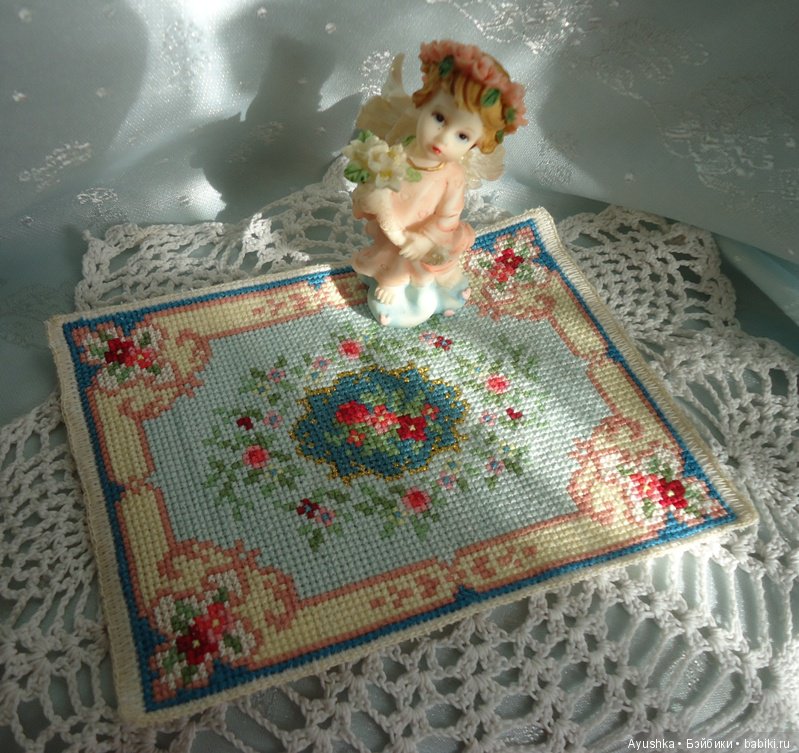 Почти персидский, но в миниатюре! Вышитый ковер для коллекционного кукольного дома