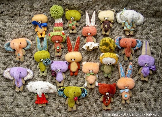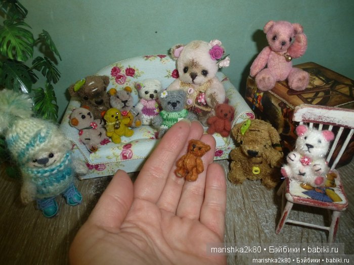 Здравствуйте! Предлагаю вам полюбоваться малюсенькими мишками, зайками и прочими игрушками разных авторов. Все малыши очень маленькие и помещаются на ладошке.