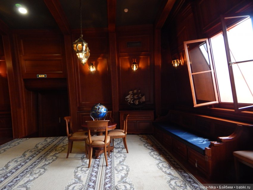 В основу внутреннего декора легла картина «Рождение Венеры» Боттичелли. Декупажная карта на рисовой бумаге. Вырезал, примерял, вырезал, примерял, потом клеил. После полного высыхания клея покрыл двумя слоями яхтного лака. Клей Момент-столяр очень быстро сохнет и картинку уже не подвинуть, если приложили на этот клей! Первый слой яхтного лака сохнет долго — 10 часов. Второй слой быстрее, но я давал просохнуть хорошенько! Этот лак создаёт толстую плёнку необратимого покрытия, смыть его нельзя, можно будет только спилить или сошлифовать. Я его разбавляю чуть уайт-спиритом. Пожиже мне больше нравится. И ещё кисть — только жёсткая и круглая!