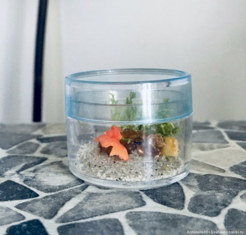 Доброго времени суток. Давно хотела сделать миниатюрный аквариум для своих кукол. Вот что у меня получилось.