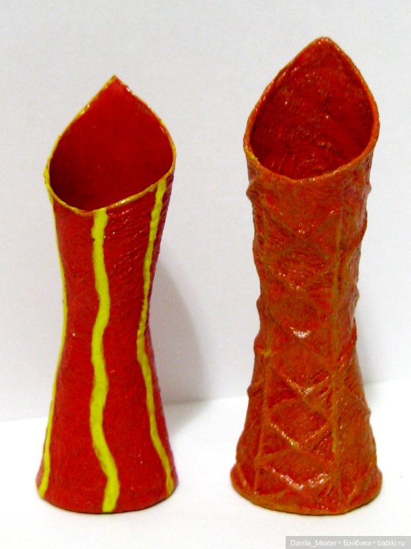 Я их делала и знаю, что они из бумаги — но всё равно невозможно в это поверить! Полное ощущение, что настоящие, эмалированные! Единственное отличие — лёгкие и тёплые :)