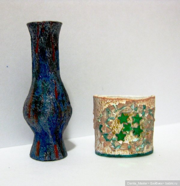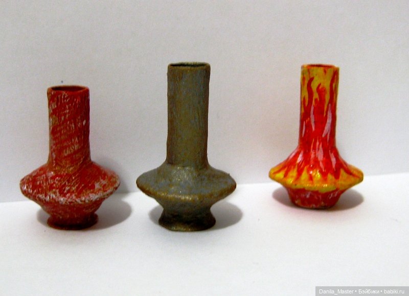 Кувшины — в основе бусина нужного размера (у меня деревянные); можно основу сделать из полимерной глины любой. Или папье-маше. Или ещё что-нибудь приспособить.