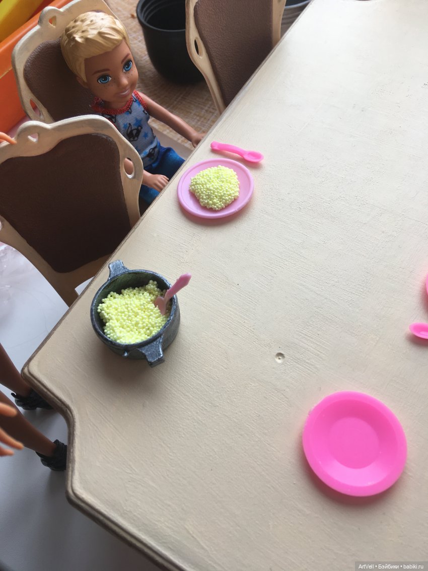 Так выглядит на столе на куклополке. Даже Готье кашу ел) Коринна пытается приучить его к более здоровой пище, чем гамбургеры)